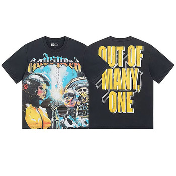 فارغة مخصصة مصمم جرافيك أسود حمض غسل خمر طباعة القطن المتضخم تي شيرت للرجال